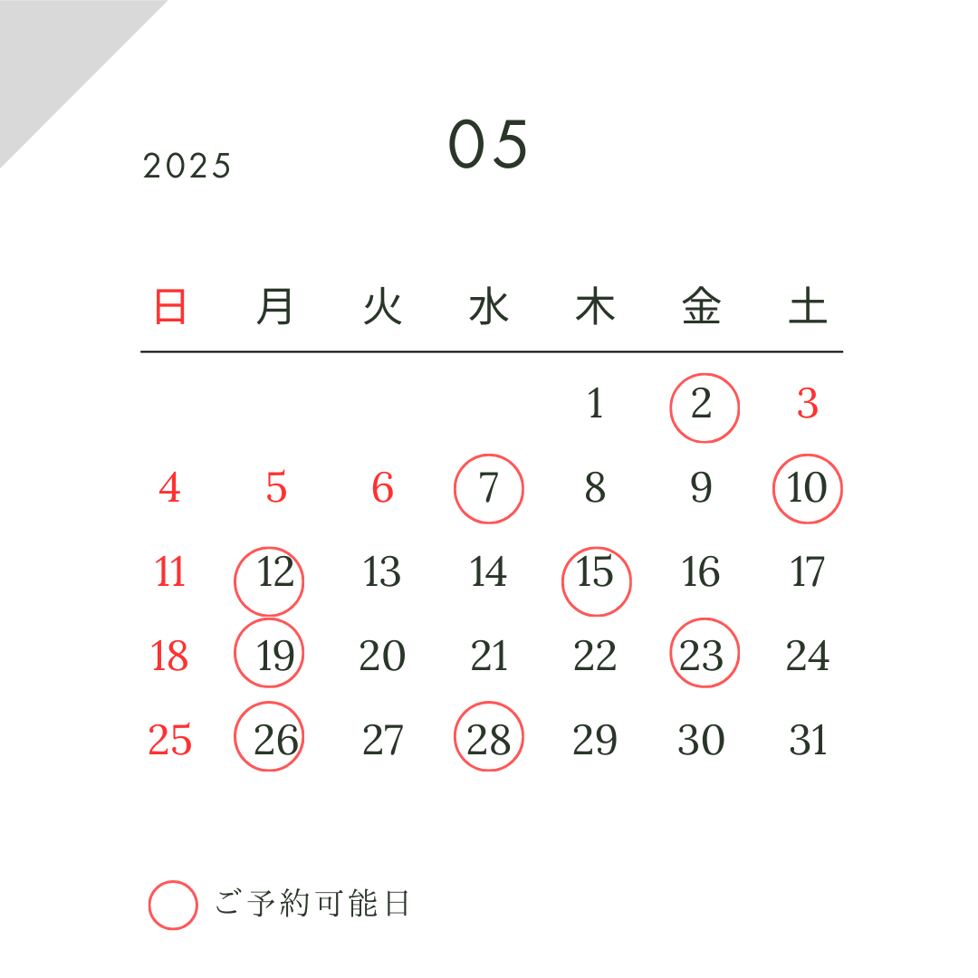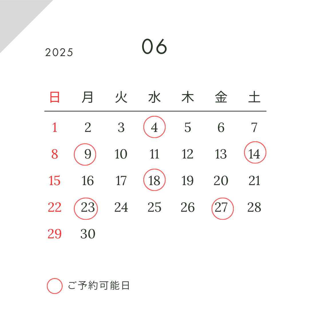 ヘッドスパ、ボタニカル育毛ケアのご予約可能日です